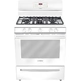 Bosch : HGS3023UC 30in Evolution 300 Series Gas Range - WhiteProduct Description: mfr: Bosch Appearance--Design Fits to Bosch Family Look. -Recommended Companion to Ascenta Dishwasher, or other Bosch 300 Series Products. Convenience--Two Racks and Five Different Rack Positions Ajust for All Cooking Needs. -Continuous Grates - Effortlessly Move Pots and Pans. Easy to Clean. -Sealed Burners - Provide Excellent Cleanability in Case of Spill Overs. -Self Clean Cycle Saves Time. Quickly and Easily Cleans your Oven. -Wide View Oven Window - Extra large Window Provides Easy Viewing of Your Food. Performance--Power Burner - Quick Heating with Powerful 14,000 BTU. -500 BTU Simmer Burner -Easily Heat Delicate Sauces without Scorching or Burning. -Five Burner Gas Ranges - Offers the Maximum Burner Performance and Ultimate Cooking Flexibility. -Large Cavity with 5.0 cu ft. Easily Accomodates Large Dishes and Offers Multiple Rack Cooking. -Hidden Bake Element for Improved Cleanability. Safety--Knobs Feature a Safety "Push to Turn" System - Makes it Harder for the Children to Operate the Range.
